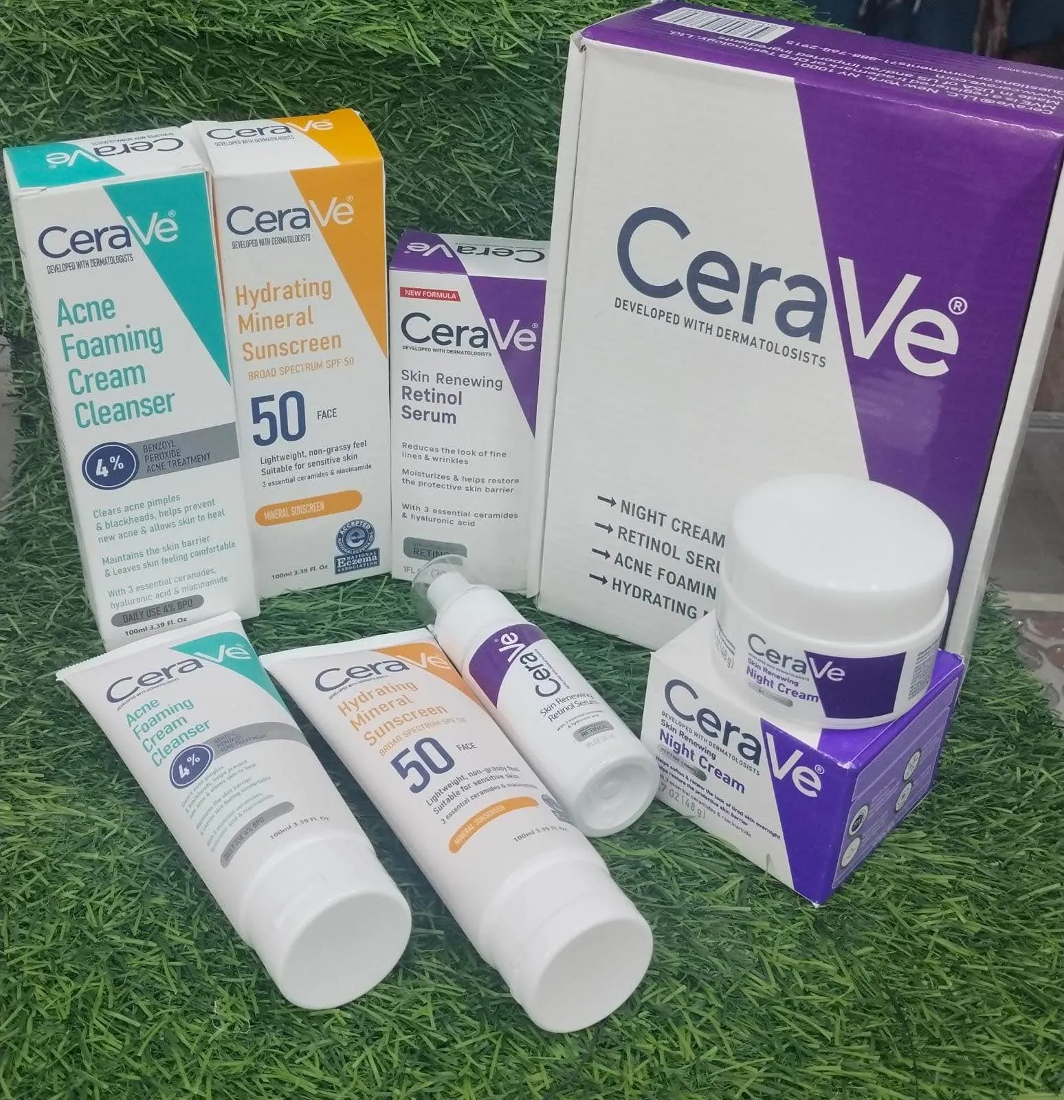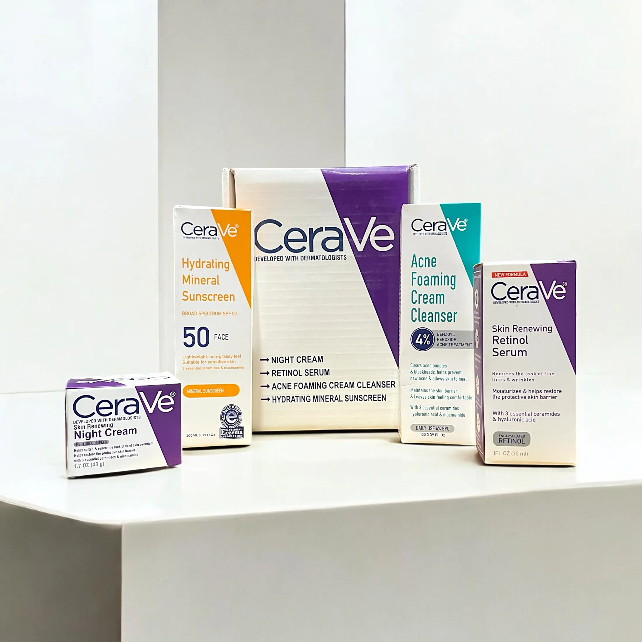 Product details of CeraVe 4-in-1 Skincare Bundle – Acne Foaming Cream Cleanser, Retinol Serum, Night Cream & Hydrating Mineral Sunscreen – Complete Dermatologist-Recommended Set – Blendzii Outleex®